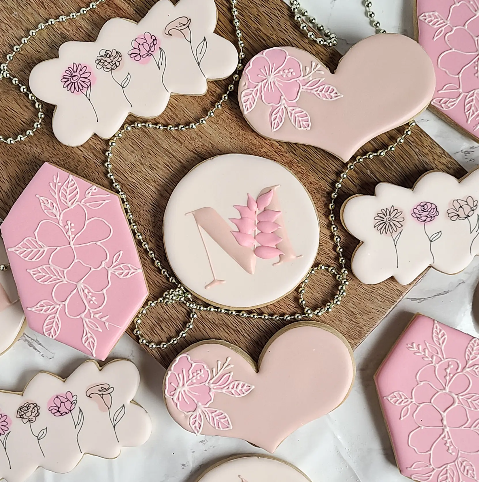 5 or more colors. Painted designs. Intricate details. Cookies larger than 5 inches. Shapes that must be hand cut or need a custom cutter.